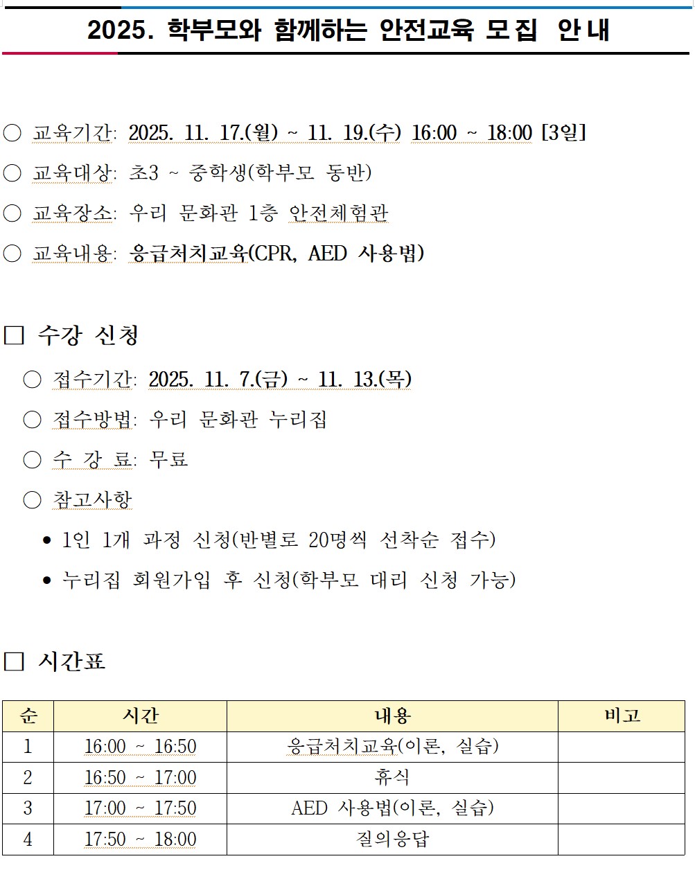 [모집] 2025년 학부모와 함께하는 안전교육 모집 안내