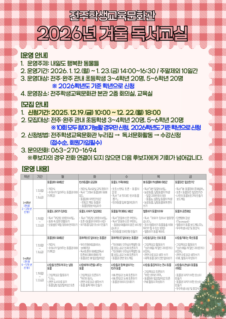 [재안내] 2026년 겨울 독서교실 수강신청 기간 재안내