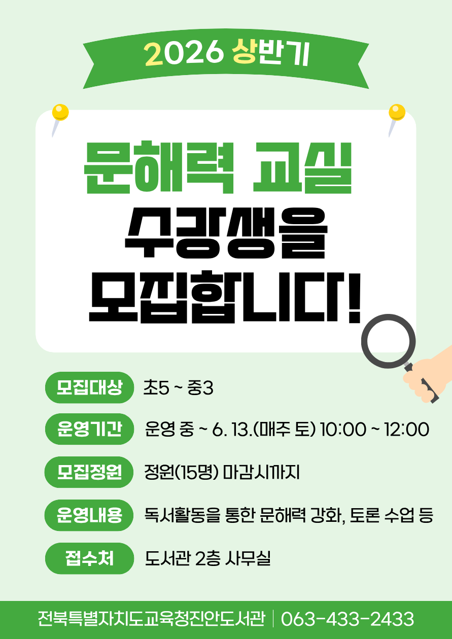 2026년도 학생교육 프로그램 『문해력 교실』수강생 모집